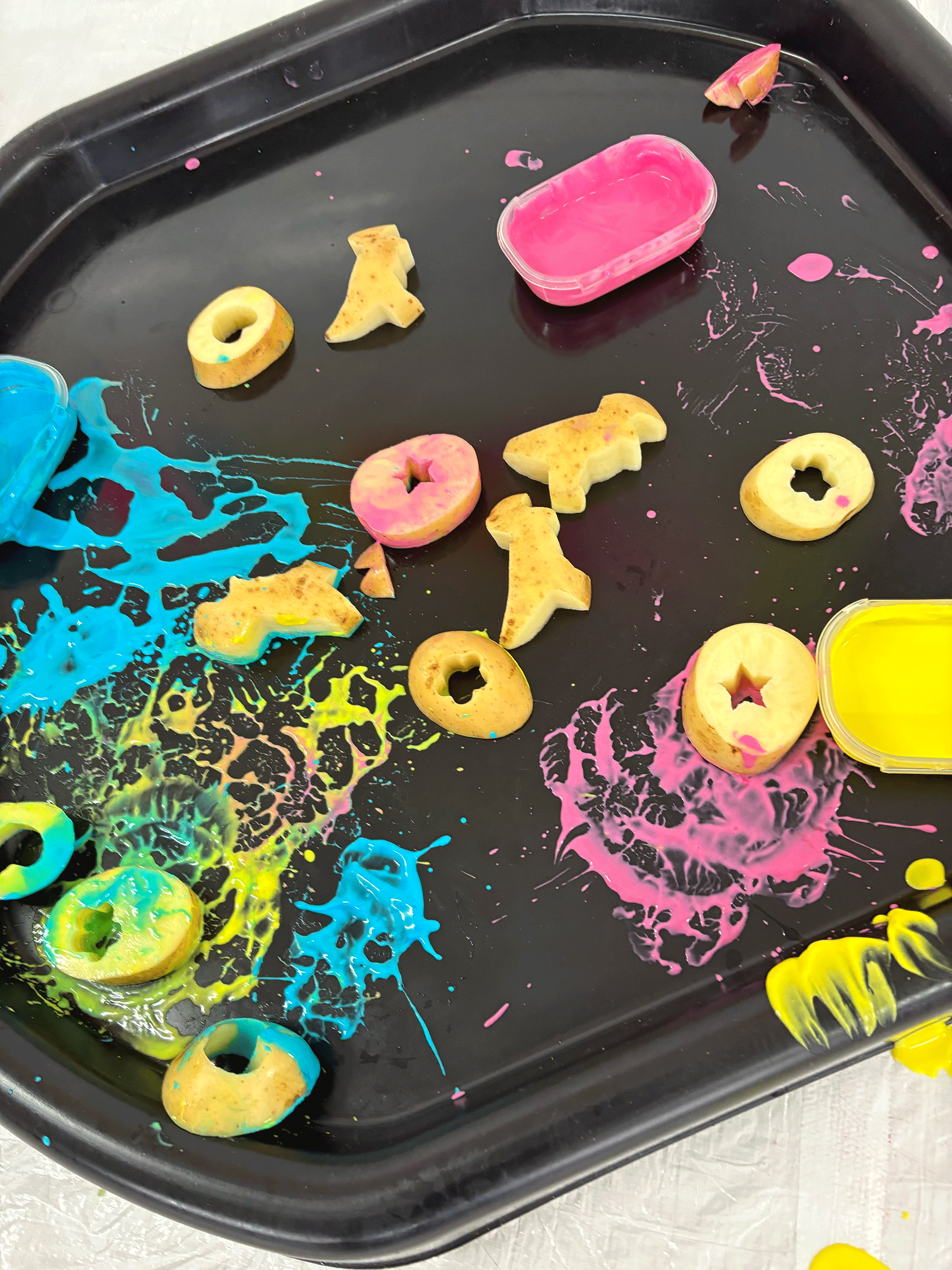Sensory play exploring textures including coloured spaghetti, rice, dry oats, jelly, play dough, slime, cereals, yogurt paint and many more. All food and equipment is child safe but we’d recommend don’t come for breakfast!